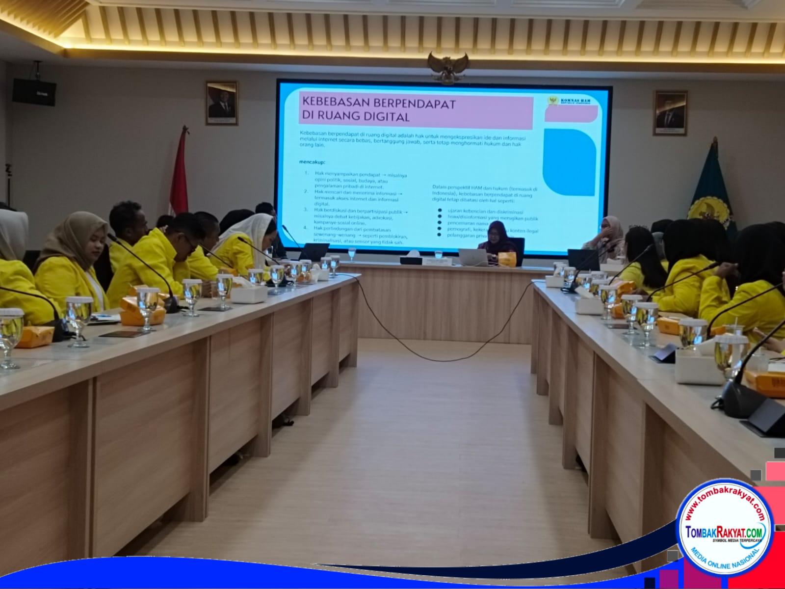 Jakarta,Tombakrakyat.com — Sekitar 70 mahasiswa yang tergabung dalam Forum Diskusi Ilmu Hukum Universitas Terbuka (FODISUT) melakukan kunjungan edukatif ke Kantor Komisi Nasional Hak Asasi Manusia (Komnas HAM). Kegiatan ini dilakukan untuk memperdalam pemahaman mengenai hak asasi manusia (HAM), khususnya terkait kebebasan berpendapat di ruang digital.Sebanyak 70 mahasiswa yang tergabung dalam Forum Diskusi Ilmu Hukum Universitas Terbuka (FODISUT) melakukan kunjungan edukatif ke Kantor Komisi Nasional Hak Asasi Manusia (Komnas HAM) pada 12 Februari 2026, pukul 10.00 hingga 13.00 WIB. Kegiatan ini bukan sekadar kunjungan akademik, tetapi menjadi ruang pembelajaran langsung untuk memahami bagaimana hak asasi manusia—khususnya kebebasan berpendapat—dijaga dan diawasi di tengah derasnya arus digitalisasi.