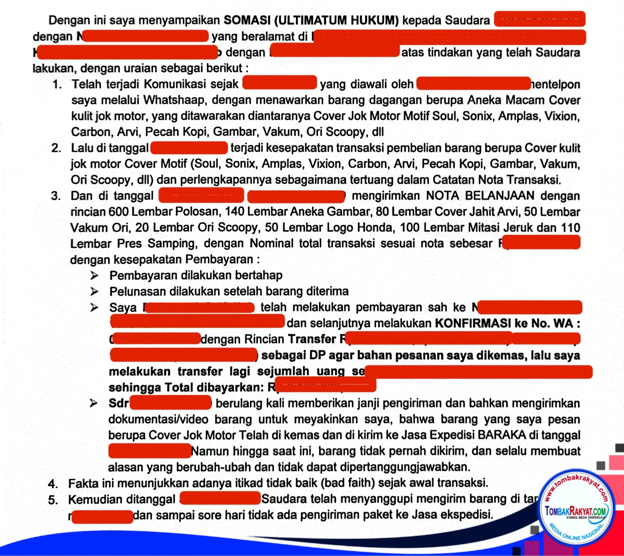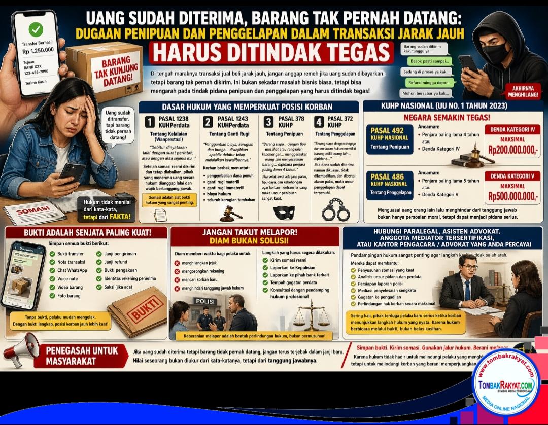 TombakEdukasi Di tengah maraknya transaksi jual beli jarak jauh melalui transfer bank dan media sosial, masyarakat kembali diingatkan untuk tidak menganggap remeh kasus ketika uang sudah dibayarkan, namun barang yang dijanjikan tidak pernah dikirim.